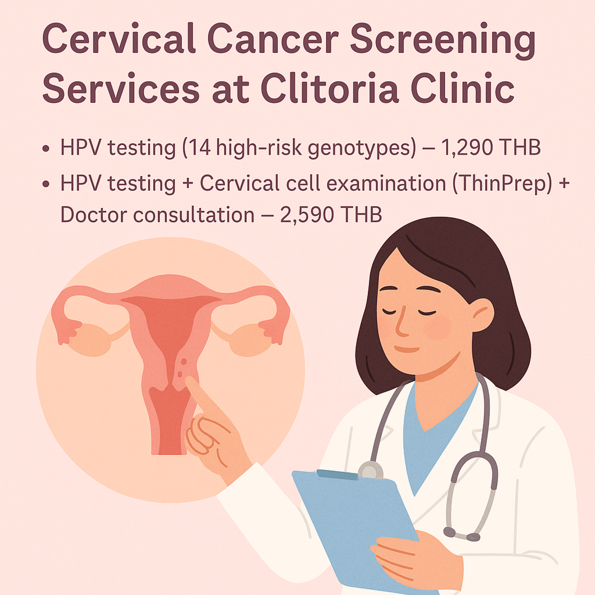 HPV testing + Cervical cell examination (ThinPrep) + Doctor consultation 2,590 THB